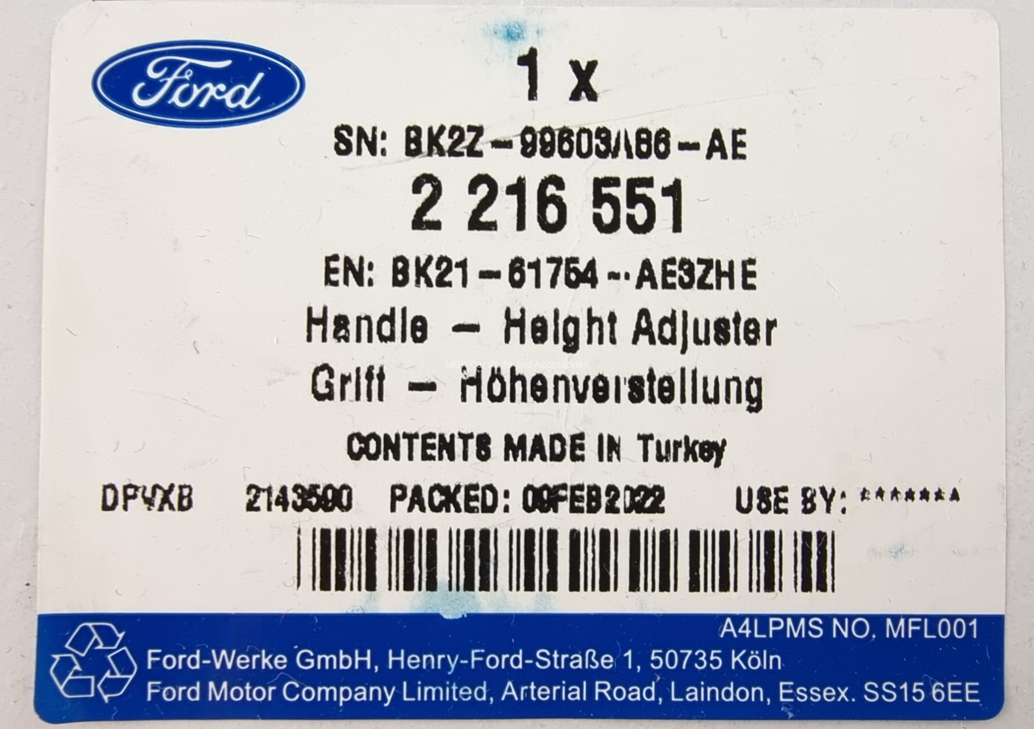UCHWYT RĄCZKA REGULACJI SIEDZENIA TRANSIT FORD OE 2216551 _ BK21-61754-AE3ZHE