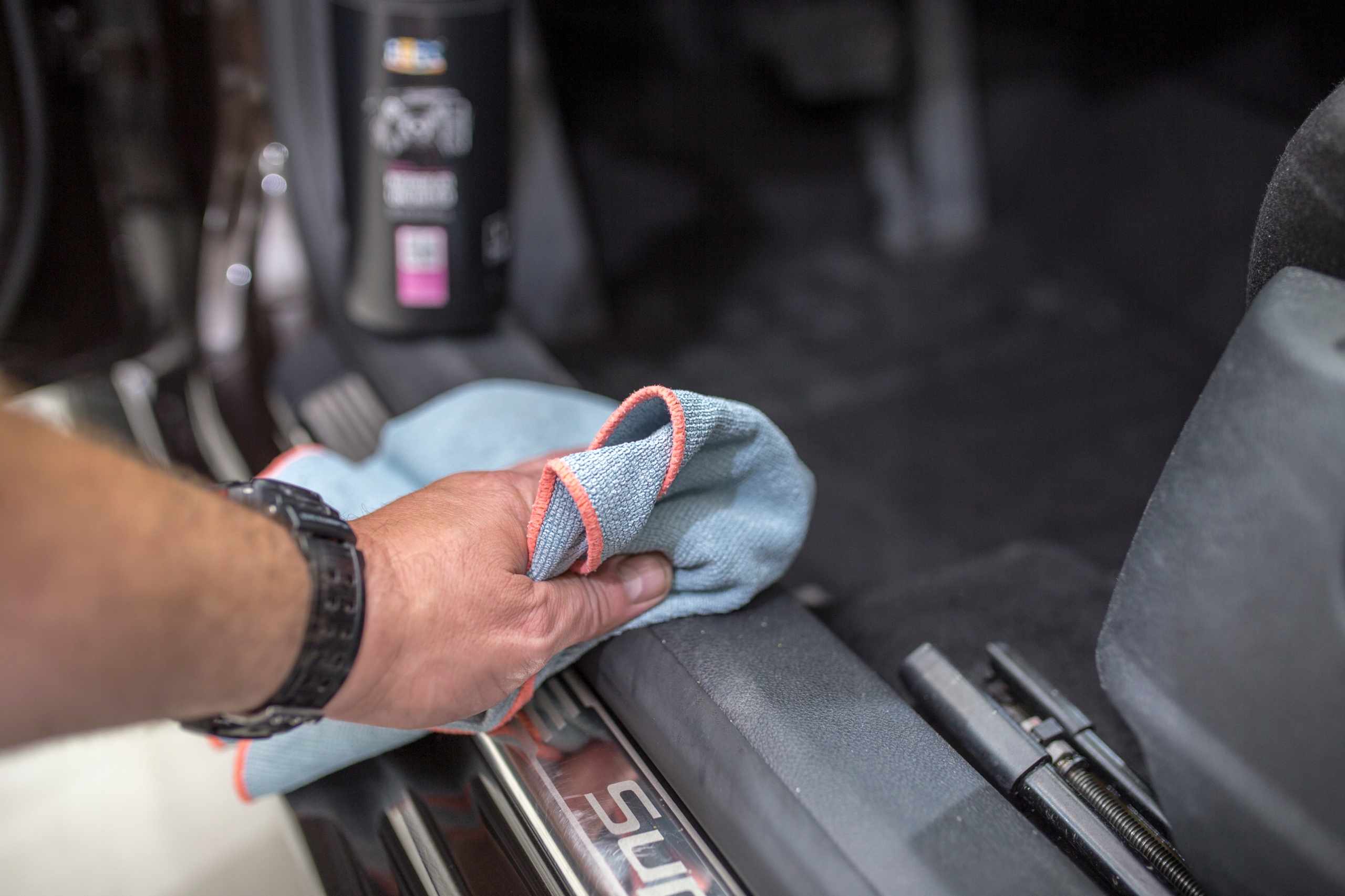 - SPRYSKAJ POWIERZCHNIĘ LUB MIKROFIBRĘ PRODUKTEM DO WNĘTRZA.