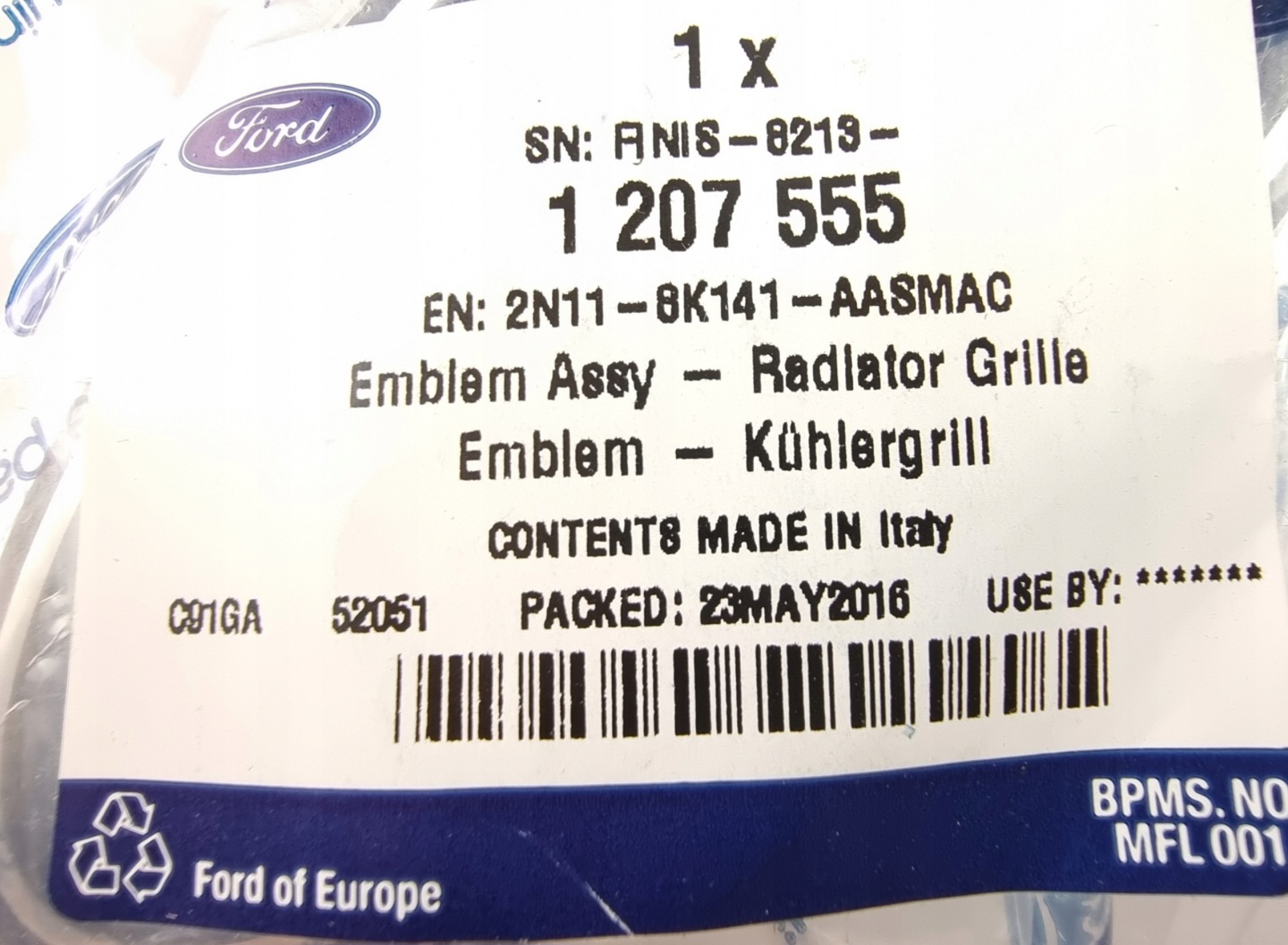 EMBLEMAT PRZÓD "FORD" FIESTA/FUSION 02-12 _ 1207555 _ 2N11-8K141-AASMAC
