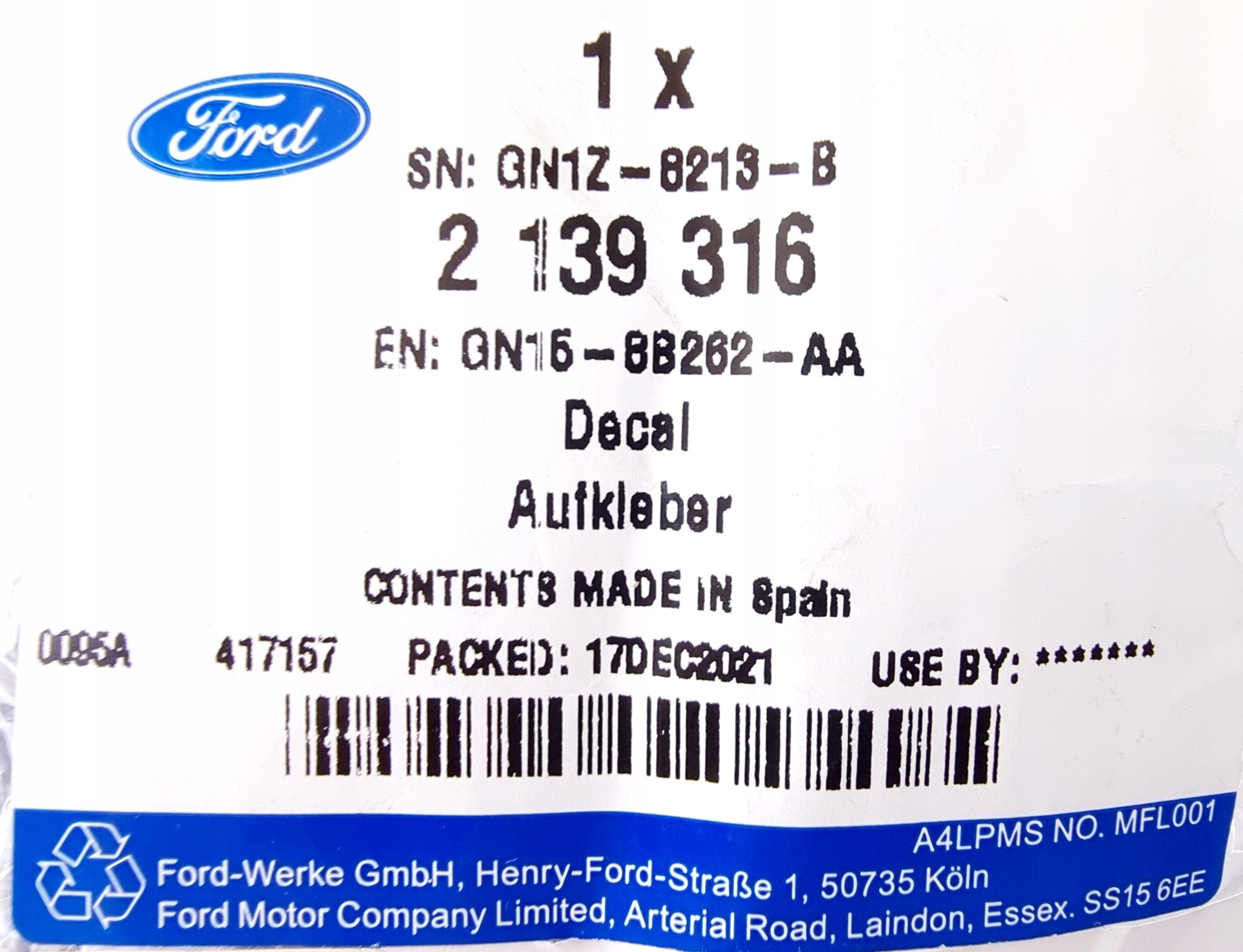 KUPUJESZ ORYGINALNY PRODUKT DO SAMOCHODÓW MARKI FORD. WSZYSTKIE CZĘŚCI POCHODZĄ Z FORD POLSKA. KORZYSTAJĄC Z ORYGINALNYCH CZĘŚCI FORDA MASZ PEWNOŚĆ CO DO JAKOŚCI I NIEZAWODNOŚCI ALE PRZEDE WSZYSTKIM OTRZYMUJESZ PRODUKT BEZPIECZNY I DEDYKOWANY DO TWOJEGO AUTA PRZEZ PRODUCENTA.