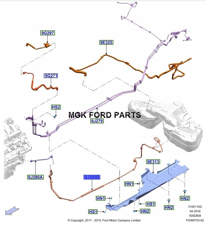FORD OE PRZEWÓD PALIWOWY ELASTYCNZY MUSTANG 2015.03.30 - 2019.03.15 _ 2161845 _ FR3C-9J280-DH