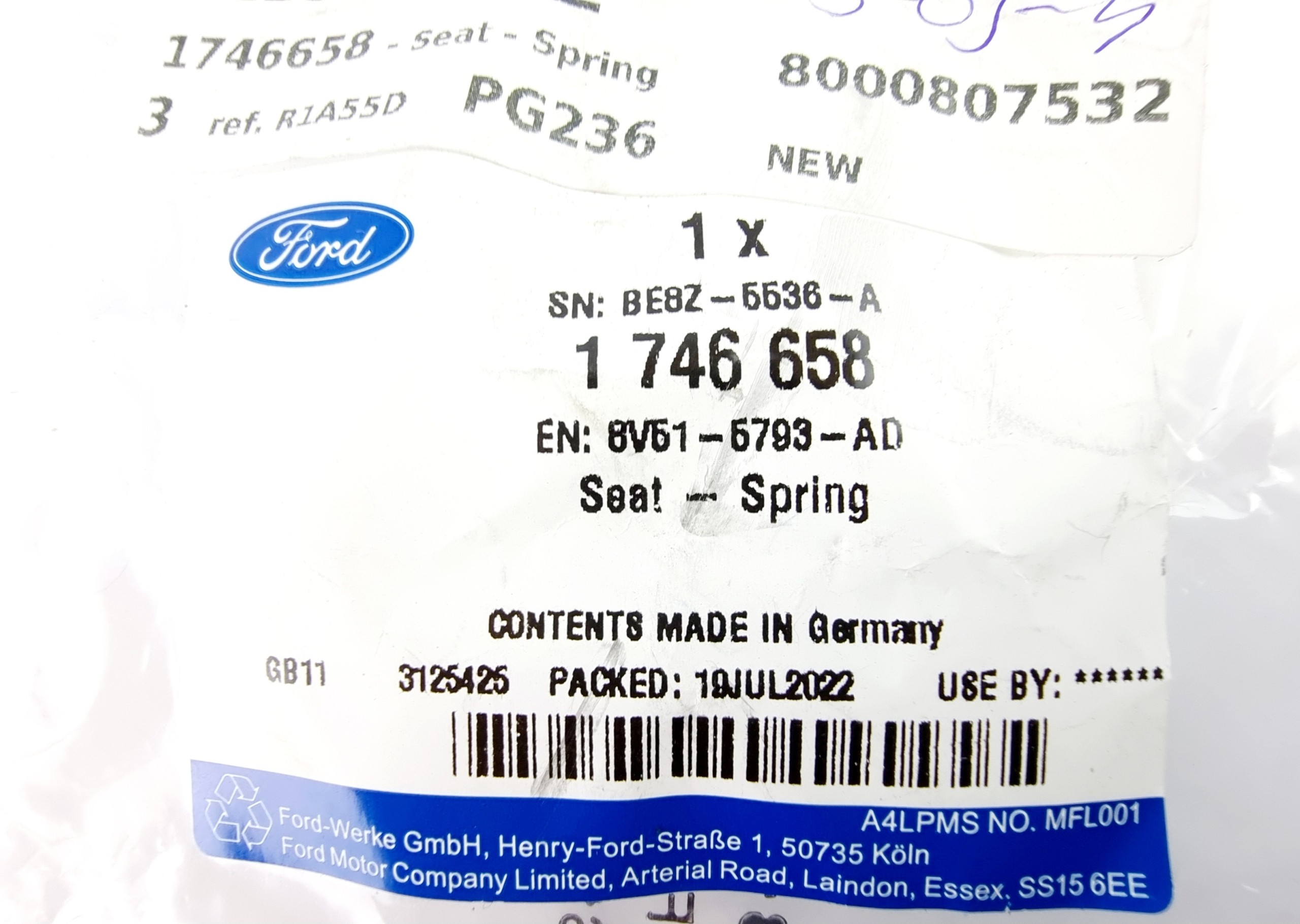 GNIAZDO SPRĘŻYNY TYŁ B-MAX ECOSPORT FIESTA COURIER 1746658 _ 8V51-5793-AD