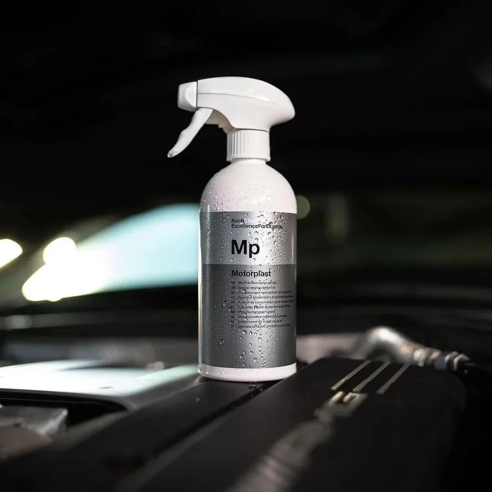 KOCH CHEMIE MOTORPLAST TO PROFESJONALNY PREPARAT DO KONSERWACJI SILNIKÓW, WĘŻY GUMOWYCH I ELEMENTÓW KOMORY SILNIKA, KTÓRY PRZYWRACA FABRYCZNY WYGLĄD BEZ NADMIERNEGO POŁYSKU I BEZ TŁUSTEGO FILMU.