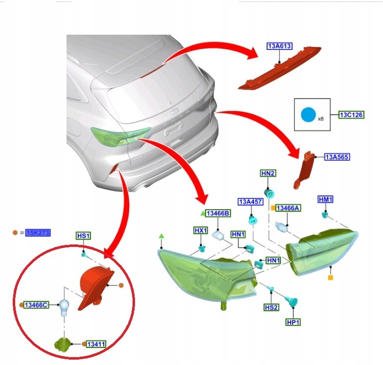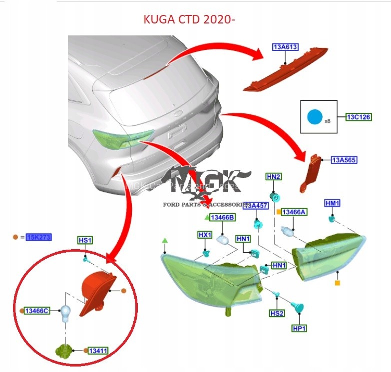 LAMPA PRZECIWMGIELNA TYLNA PRAWA KUGA _ 2711890 _ LV4B-15K272-AC