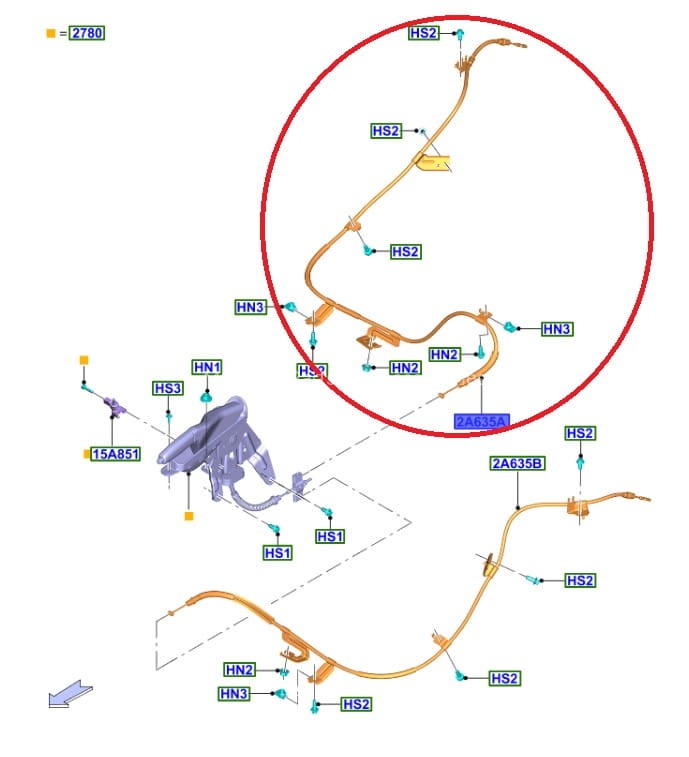 LINKA HAMULCA POSTOJOWEGO MUSTANG 15- 2373064 _ FR3C-2A809-AE