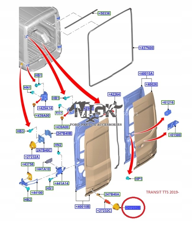 ORYGINALNY ODBÓJ DRZWI TYŁ TRANSIT 19-21