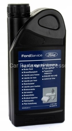 ZALECANY DO POJAZDÓW Z ABS, RÓWNIEŻ DO HYDRAULICZNYCH UKŁADÓW STEROWANIA SPRZĘGŁEM, NAJNOWSZY PŁYN HAMULCOWY FORD'A WPROWADZONY DO PROGRAMU SERWISOWEGO W 2014 R. ZALECANY DLA NOWYCH MODELI FORDA. PŁYN HAMULCOWY FORDA HIGH PERFORMANCE ZAWIERA GLIKOLE POLIETYLENOWE JAKO ŚRODKI SMARUJĄCE ORAZ SKUTECZNE INHIBITORY KOROZJI I ANTYUTLENIACZE. NADAJE SIĘ RÓWNIEŻ DO HYDRAULICZNYCH UKŁADÓW STEROWANIA SPRZĘGŁEM.
