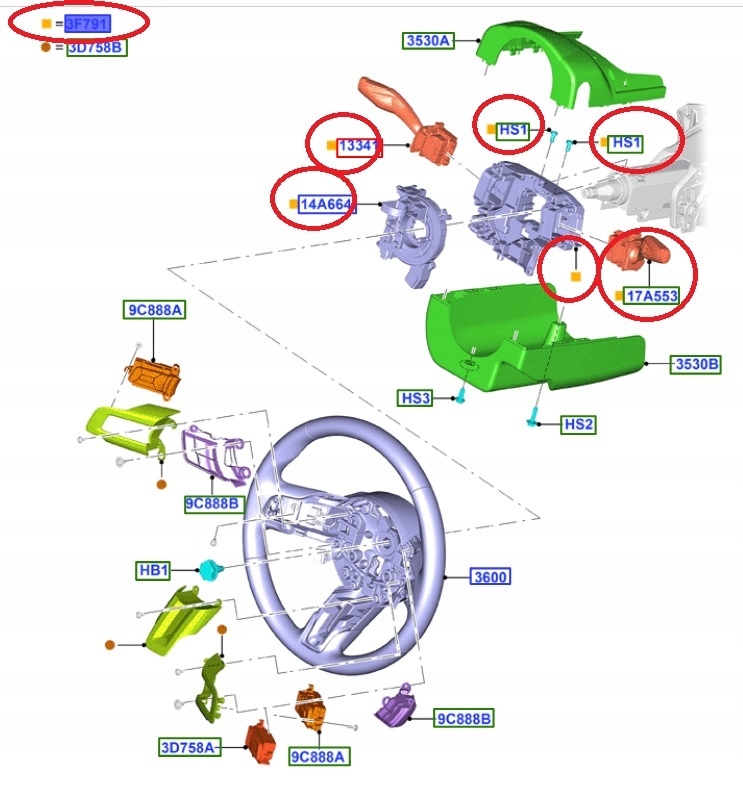 PRZEŁĄCZNIK OBUDOWA KIEROWNICY MUSTANG 17 - 19 2456933 _ JR3T-14B522-JC3JA6 _ JR3Z3F791JA