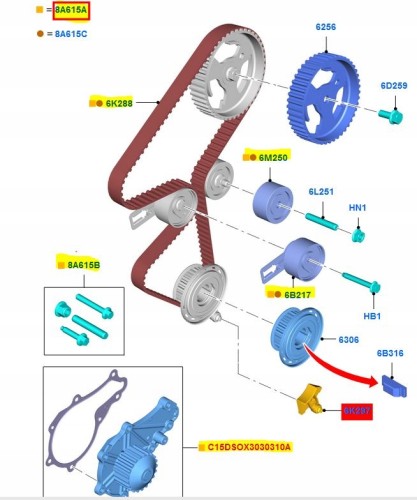 ROZRZĄD + POMPA WODY FOCUS FIESTA KUGA 1.5 TDCI 2008687_FM5Q-8B596-AB