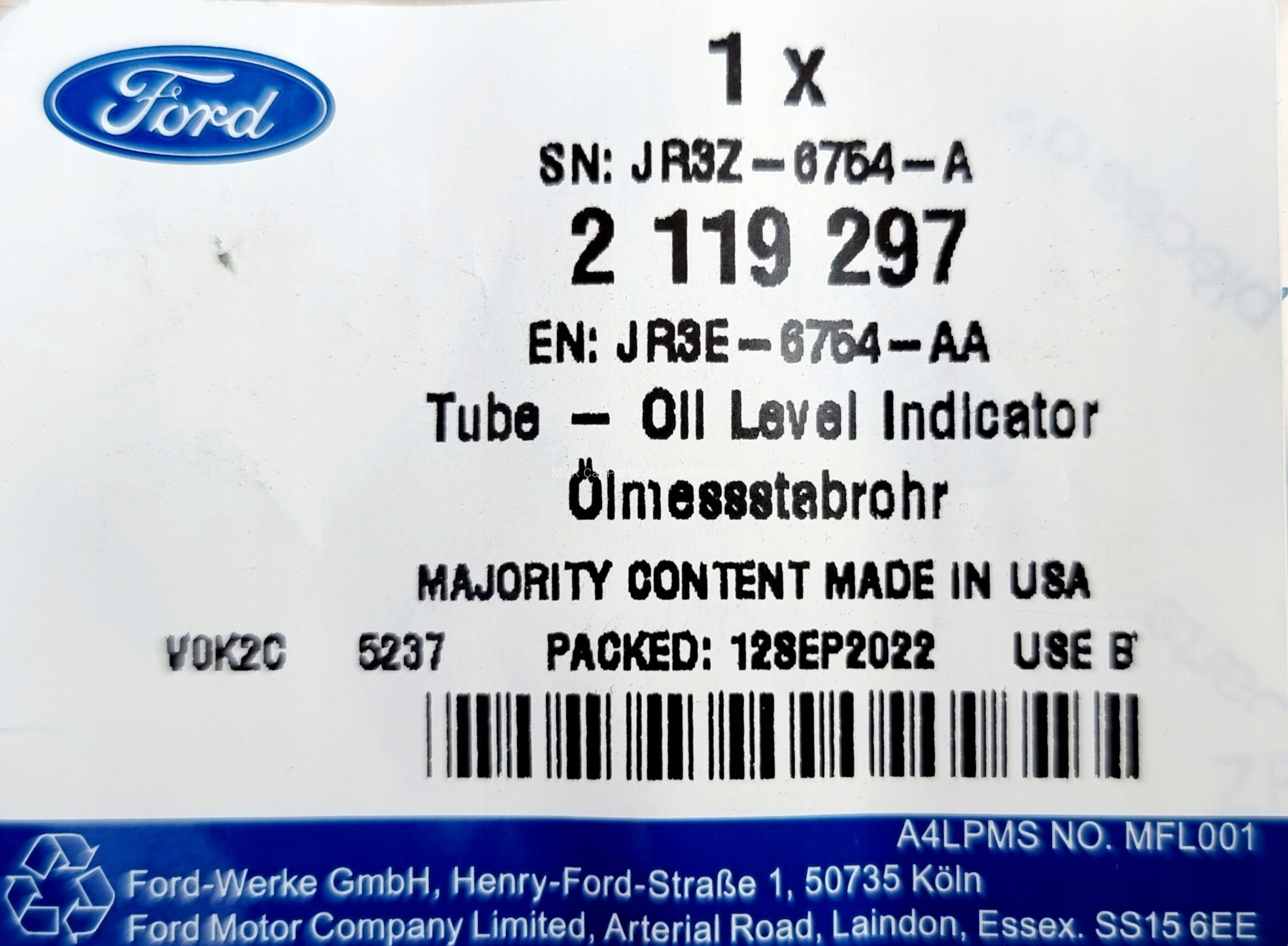 RURKA WSKAŹNIKA OLEJU DO BAGNETU MUSTANG OD 2017- 2119297 _ JR3E-6754-AA