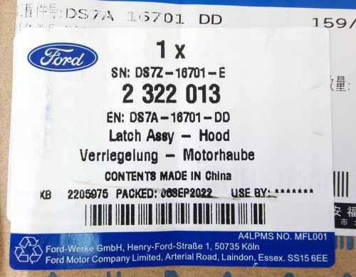 ZAMEK MASKI LEWY MONDEO MK5 / FUSION 13- USA OE 2322013 _ DS7A-16701-DD