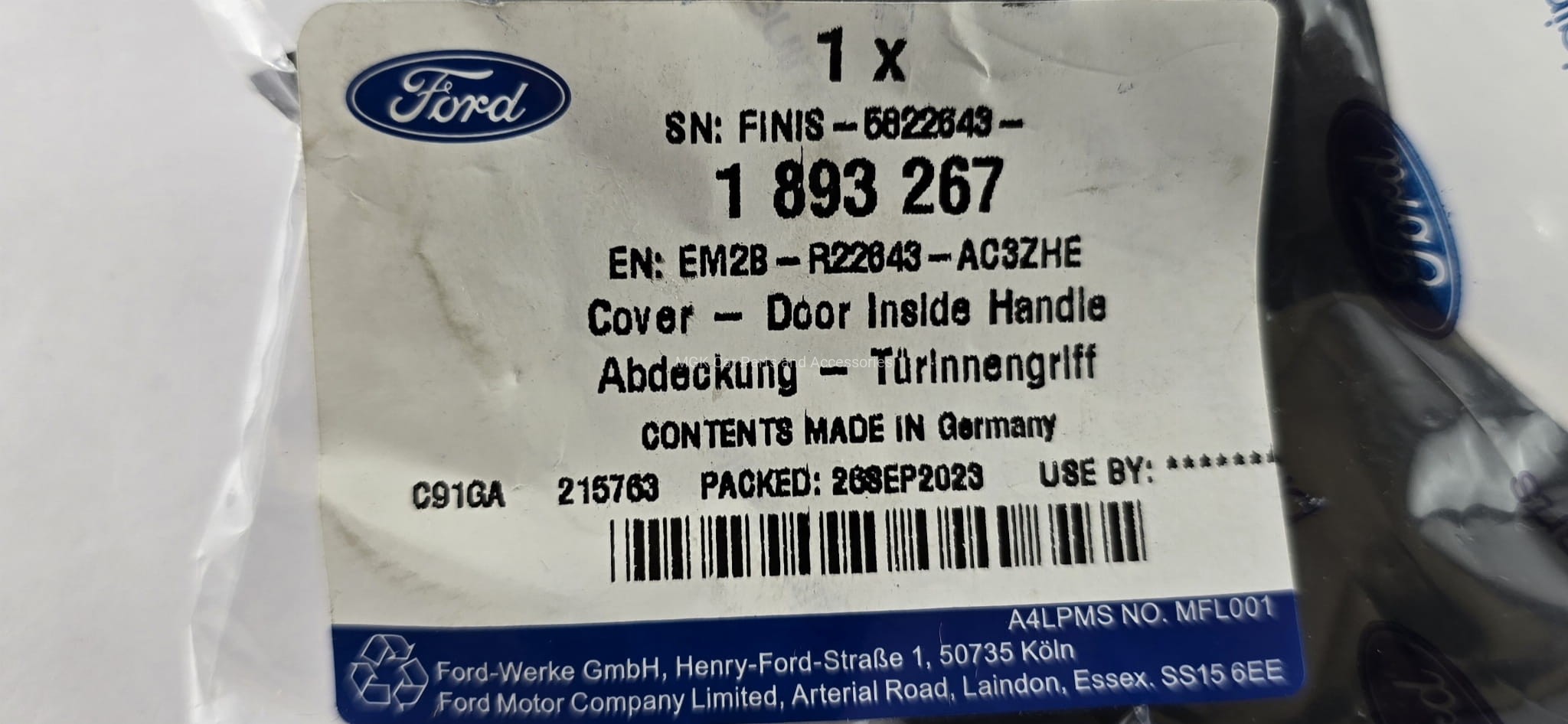 ZAŚLEPKA LEWA KLAMKI PRZEDNIEJ S-MAX/GALAXY 15-1893267 _ EM2B-R22643-AC3ZHE